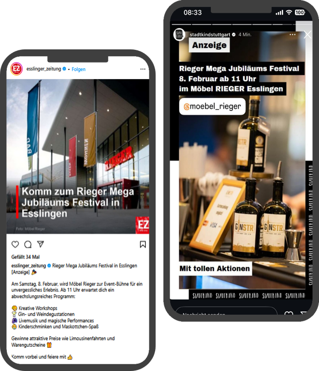 Möbel Rieger buchte bereits zum dritten Mal in Folge eine umfangreiche Digitalkampagne zur Bewerbung seines Mega Festivals mit Musik, Showeinlagen und Workshops.